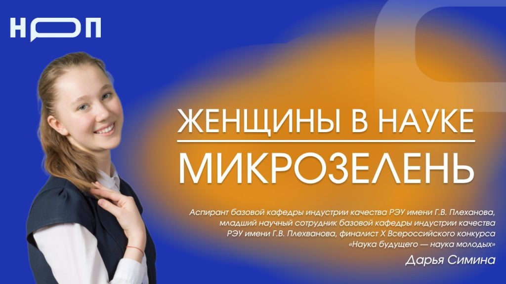 Героиня – аспирант базовой кафедры индустрии качества РЭУ имени Г.В. Плеханова, младший научный сотрудник базовой кафедры индустрии качества РЭУ имени Г.В. Плехванова, финалист Х Всероссийского конкурса «Наука будущего – наука молодых» Дарья Симина.